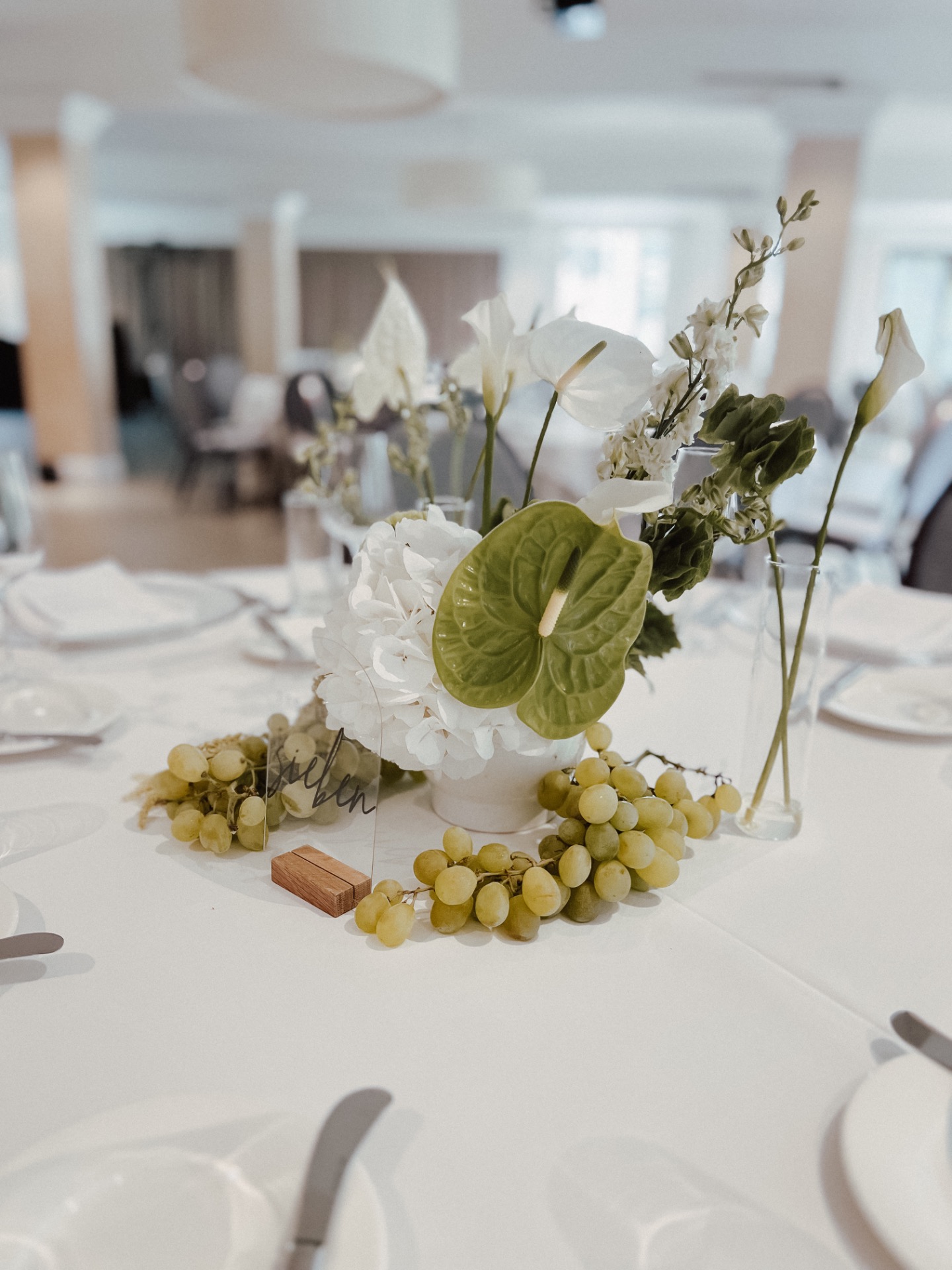 Wir bieten ein passendes Blumenkonzept, inkl. hochwertigen Blumenverkauf, Blumen-Accessoires inkl. Brautstrauß und Co. sowie Integrierung der Blumen in die gesamte Dekoration. (Nebenrecht gem. § 32 GewO)