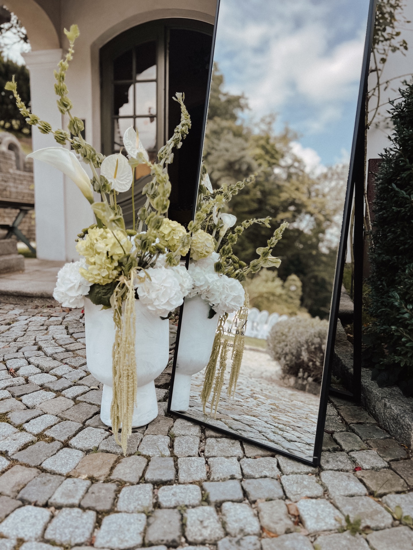 Lieferung/Aufbau der Dekoration und Blumen-Installationen vor Ort. Durch unsere Erfahrung und Know-how können wir den Deko-Aufbau im Team effizient planen und koordinieren, sodass alles rechtzeitig fertiggestellt wird. Dadurch haben unsere Brautpaare und deren Trauzeugen mehr Zeit, sich auf andere wichtige Dinge zu konzentrieren und können den Tag stressfrei genießen.